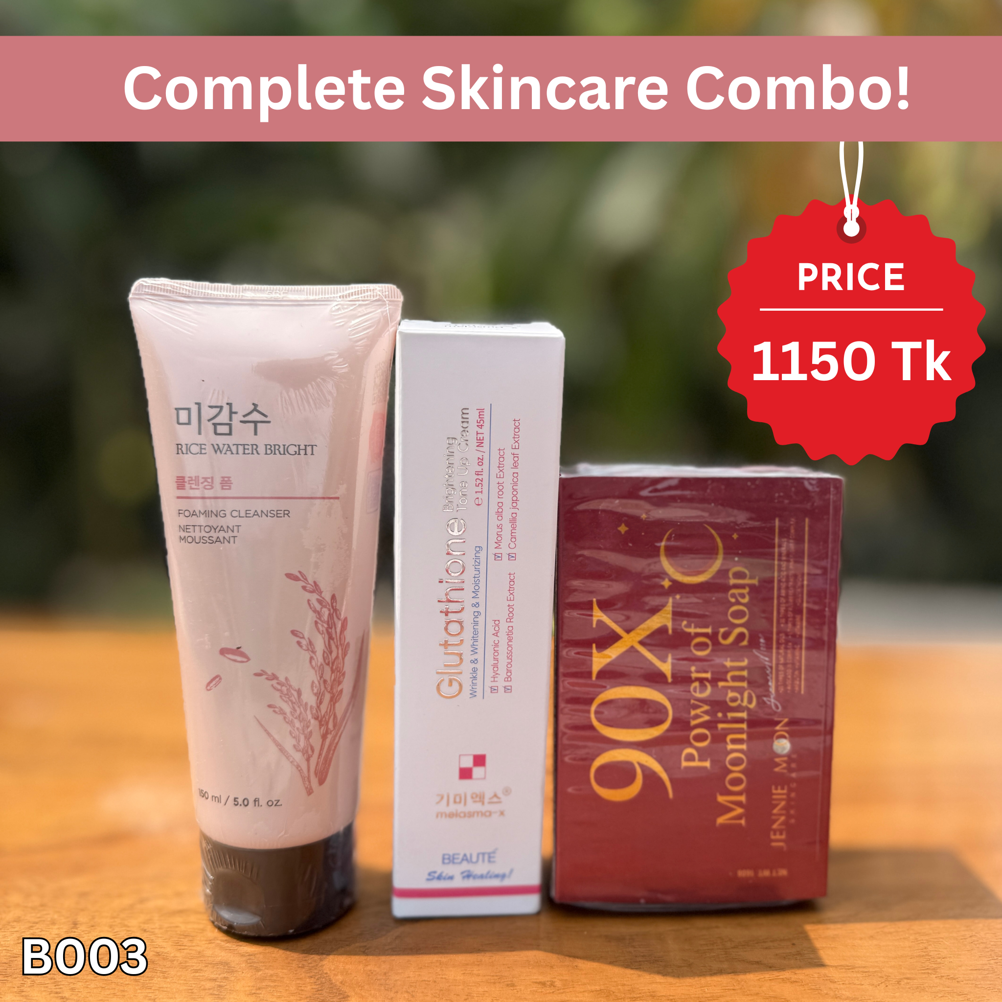 এই কম্বোতে রয়েছে Rice Water Bright Foaming Cleanser, Glutathione Brightening Cream এবং Jennie Moon 90X Power of Moonlight Soap—যা ত্বক পরিষ্কার রাখা, উজ্জ্বলতা বাড়ানো এবং স্কিনকে ফ্রেশ ও মসৃণ রাখতে সহায়তা করে। নিয়মিত ব্যবহারে ত্বকের মলিনতা কমে, ত্বক দেখায় আরও ক্লিন, সফট ও healthy glow সহ। 🌸💖